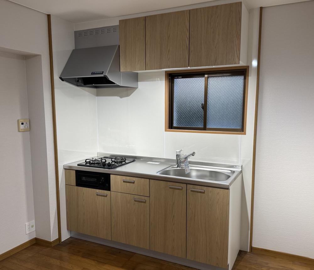 清潔感あふれる白の壁面と温かみのある木目扉で、毎日の料理時間がさらに楽しくなります!