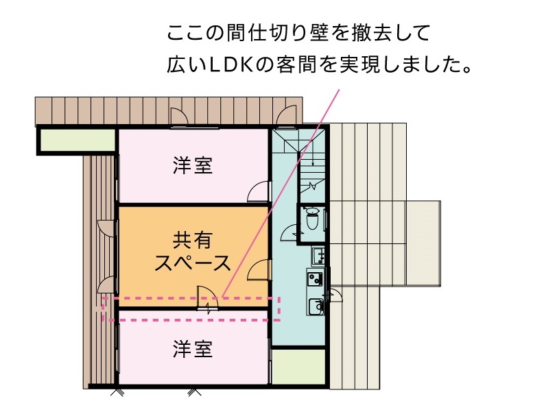 | 依頼のきっかけ | ご両親がお住いの住宅2階部分に住めるようリフォームしたい。 |
