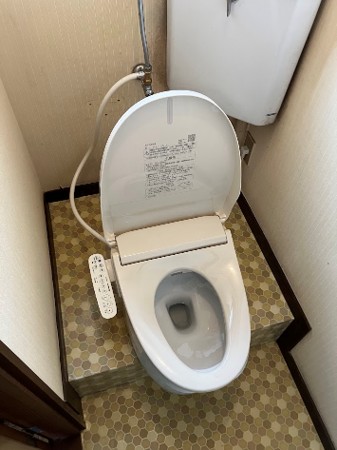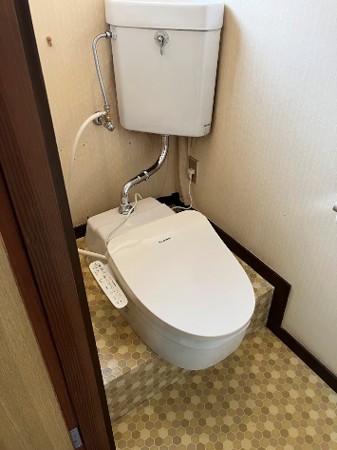 トイレは2ヶ所ありますが、主に生活している居間の近くにある便器を 費用を抑えて洋式便座にできないかとのご相談をいただき、 今回のご提案になりました。 |