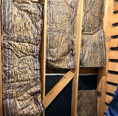 壁の中では断熱材が湿気を吸って痩せてしまい、隙間ができていました。冷気がこの隙間から侵入し、浴室全体を冷やしていた原因です。