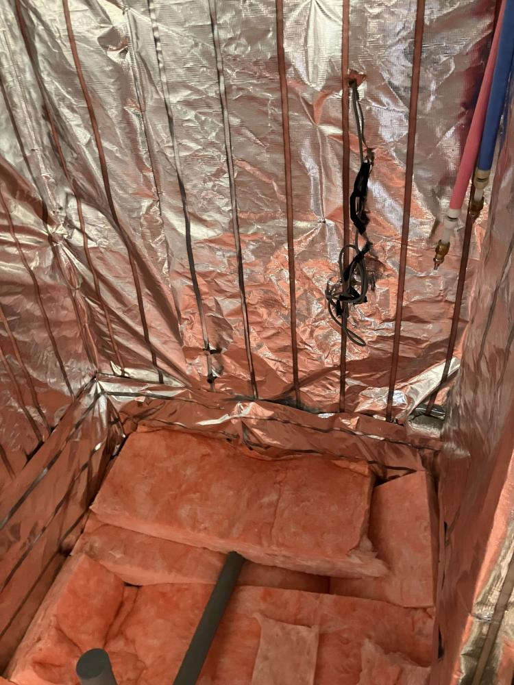 劣化した断熱材を取り除き、高性能な断熱材を隙間なく敷き詰めました。冬の冷気を伝えにくく、浴室の温もりを守りやすい構造へと整えております。